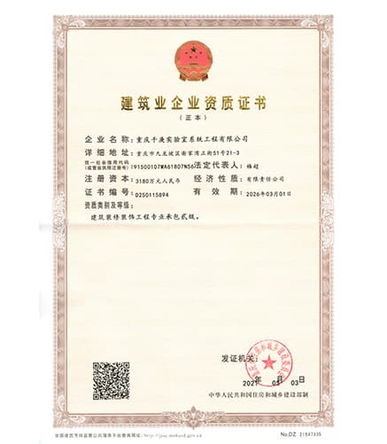 重慶千庚實驗室系統(tǒng)工程有限公司是國內(nèi)實驗室行業(yè)領先的集成式、一體化、創(chuàng)新型高端實驗室整體解決方案服務商,包括不限于:實驗室前期規(guī)劃設計、通風系統(tǒng)、實驗室裝修工程、潔凈工程、供氣系統(tǒng)、給排水、電氣、智能控制等十多個模塊,以及相關設備的供應、安裝、售后服務等。為中國實驗室建設創(chuàng)建真正一站式服務的系統(tǒng)集成公司。